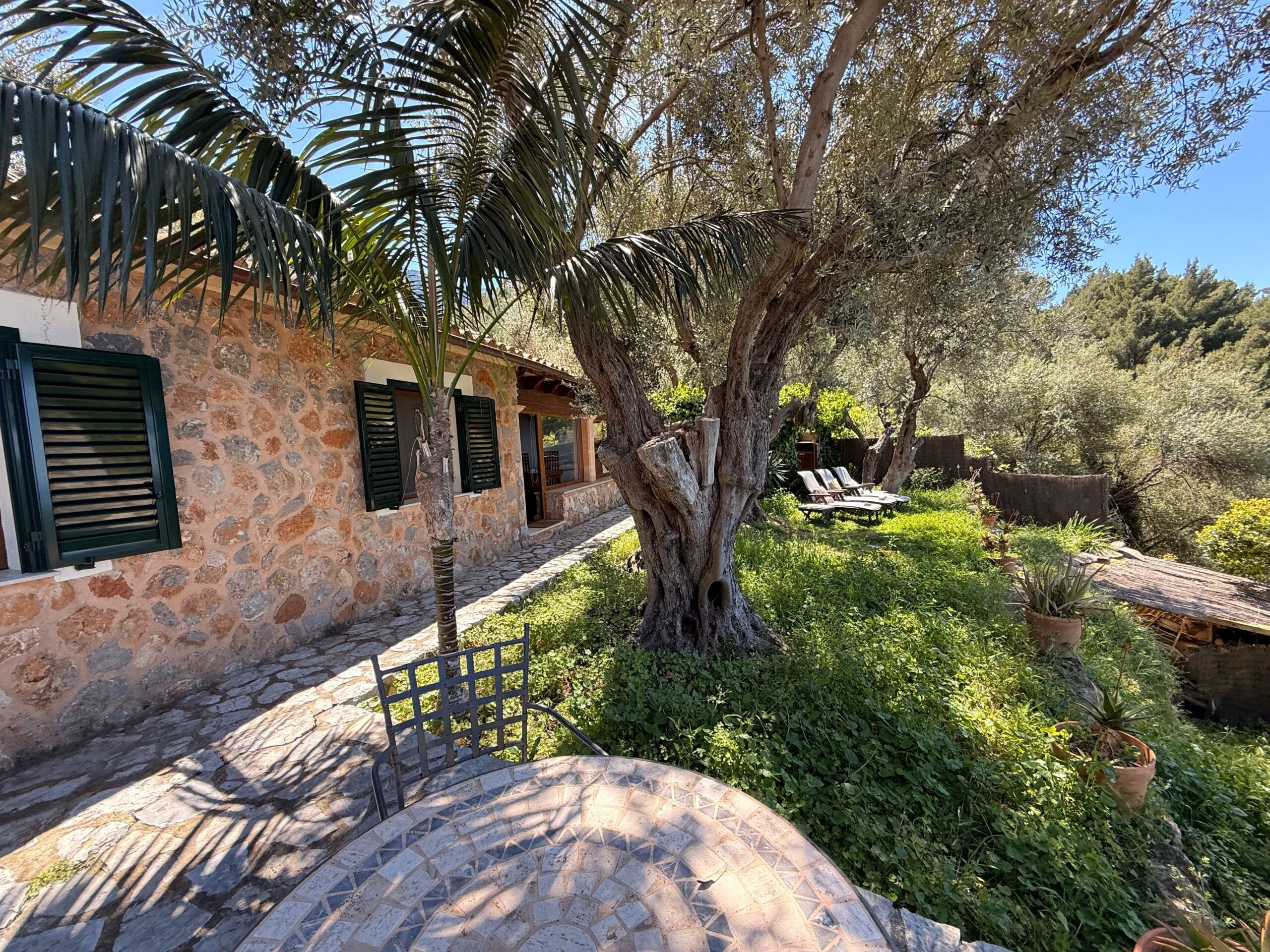 Cana Fosellas is a traditional Mallorcan cottage located in a residential mountain area of Deià, accessed via a private road. It offers peace and quiet, sea views, and a natural setting, just a 10-minute drive from the village center.