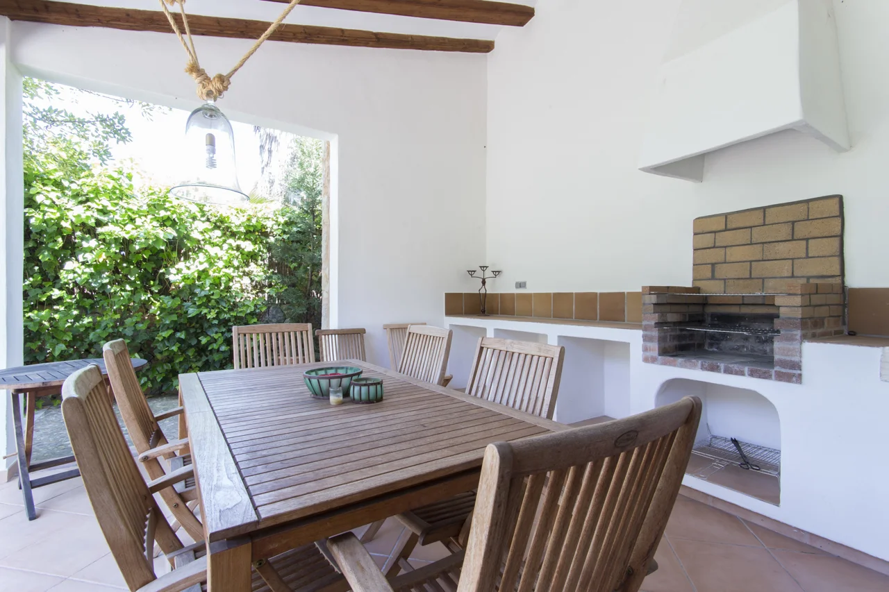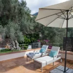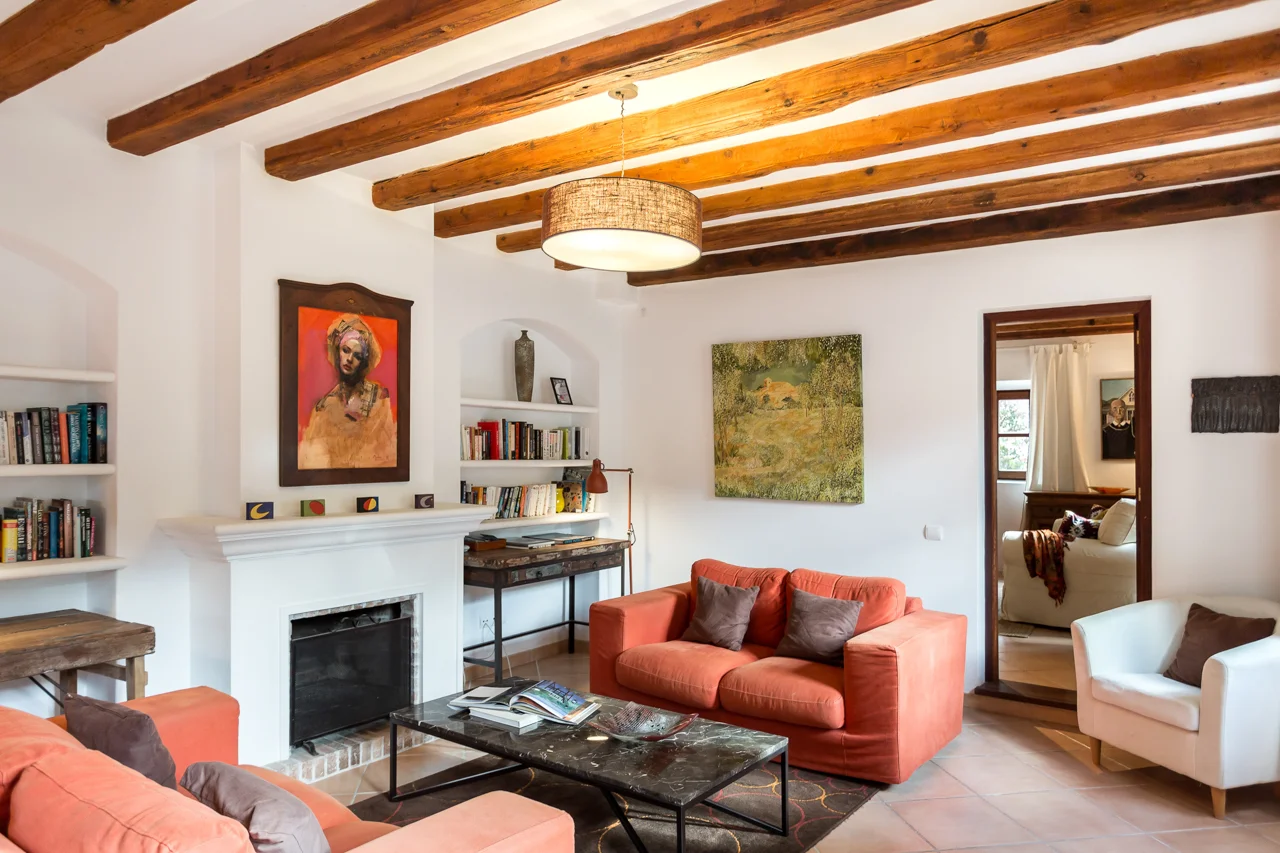 La villa, cuidadosamente distribuida en dos plantas, incluye una cocina moderna y totalmente equipada, un amplio salón-comedor con chimenea y una sala de estar/estudio independiente con TV. Los interiores son cálidos y confortables, con aire acondicionado y calefacción en todas las habitaciones, y un estilo relajado que complementa el paisaje circundante.