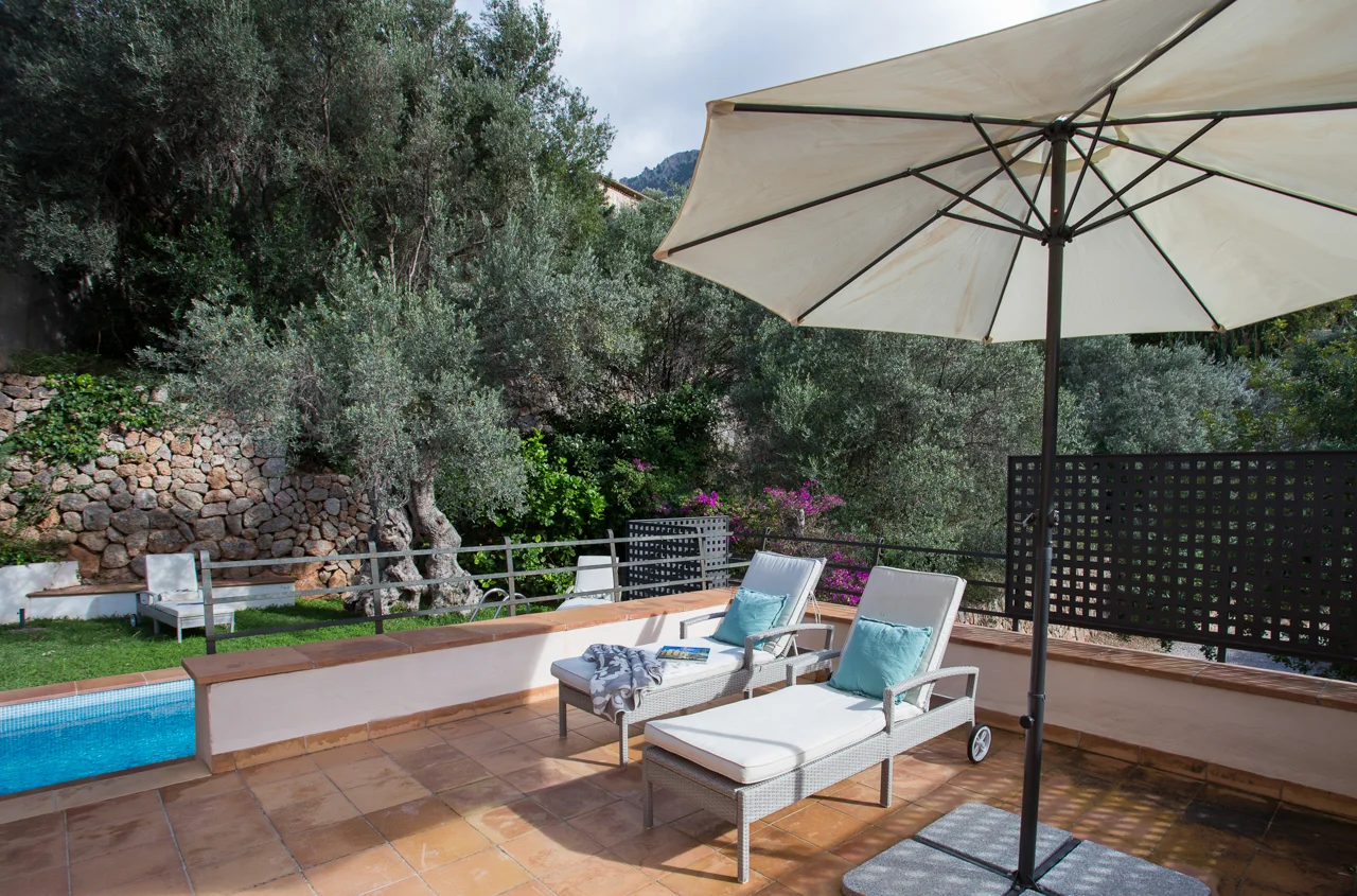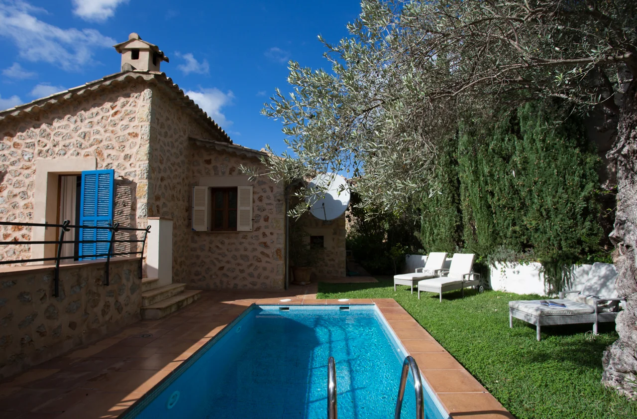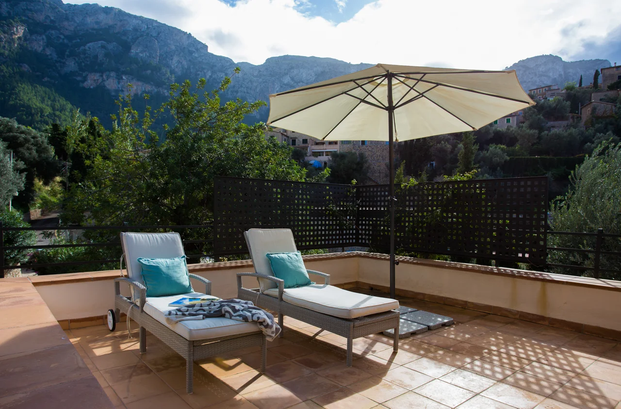 Ubicada en el corazón de Deià, en la tranquila urbanización de Son Canals, Can Monticel es una villa independiente con vistas panorámicas al pueblo, la iglesia y la sierra de Tramuntana. Con piscina privada, solárium y jardín, ofrece privacidad y proximidad a la vida local, todo a poca distancia de tiendas y restaurantes.