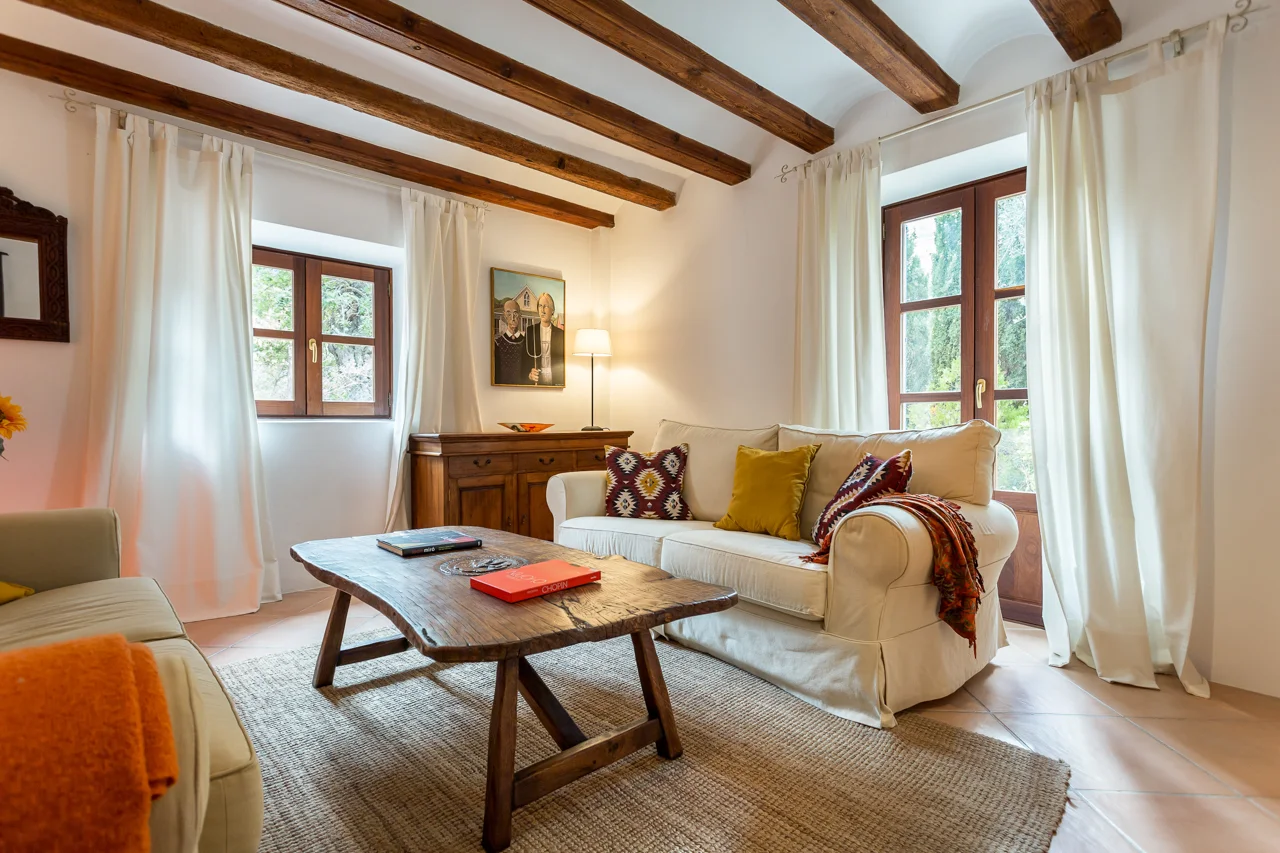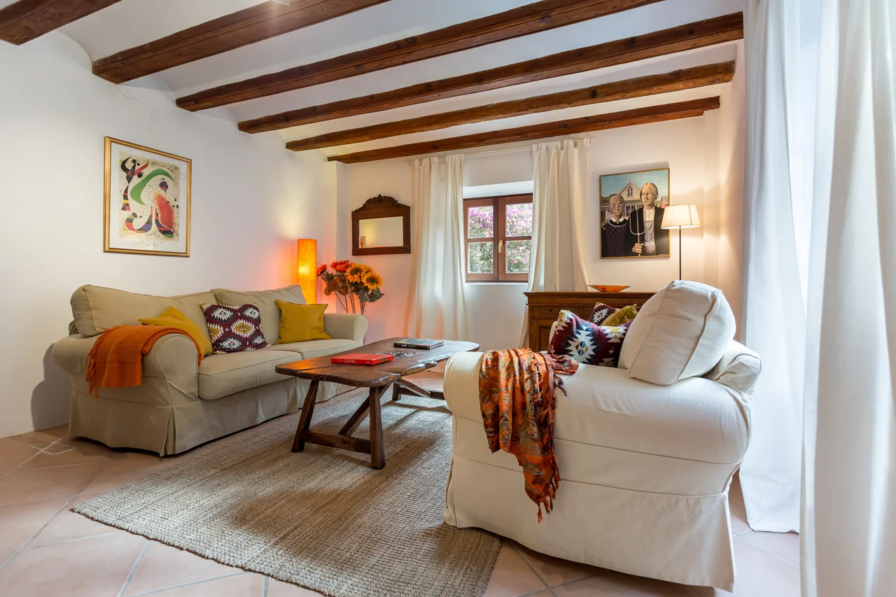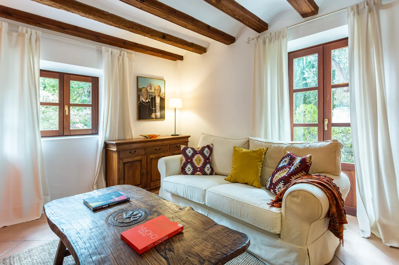 Ubicada en el corazón de Deià, en la tranquila urbanización de Son Canals, Can Monticel es una villa independiente con vistas panorámicas al pueblo, la iglesia y la sierra de Tramuntana. Con piscina privada, solárium y jardín, ofrece privacidad y proximidad a la vida local, todo a poca distancia de tiendas y restaurantes.