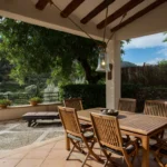 El espacio exterior incluye una piscina privada, césped y varias terrazas con tumbonas y sombrillas. Un patio con barbacoa y una gran mesa de comedor ofrece el entorno ideal para comer al aire libre, todo ello con hermosas vistas al valle del pueblo y a la iglesia.