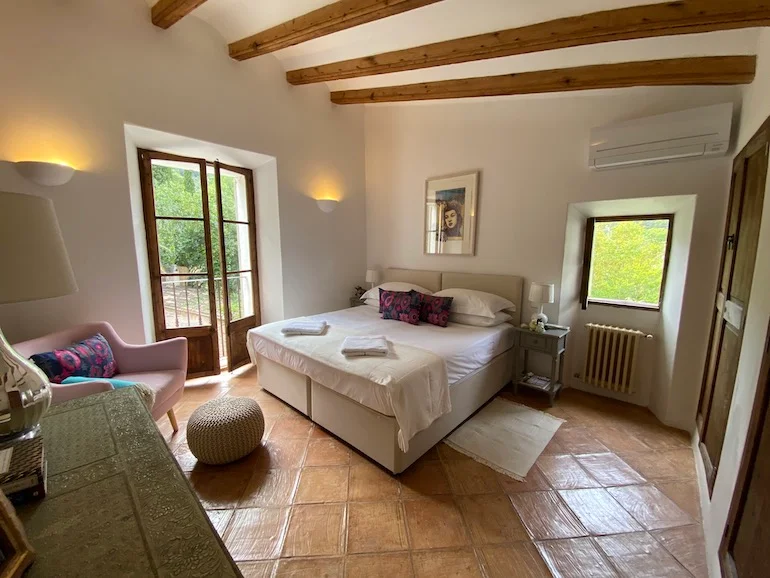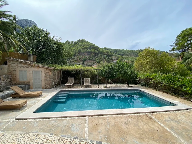 Escondida en el pueblo de Deià, Es Clot es una tranquila casa adosada de cuatro dormitorios con jardín privado y piscina de agua salada. Rodeada de palmeras y vistas a la montaña, la propiedad combina la tradición mallorquina con las comodidades modernas. Es una casa diseñada tanto para los tranquilos días de verano como para las acogedoras tardes de invierno, perfecta para familias o grupos pequeños que buscan autenticidad y tranquilidad.